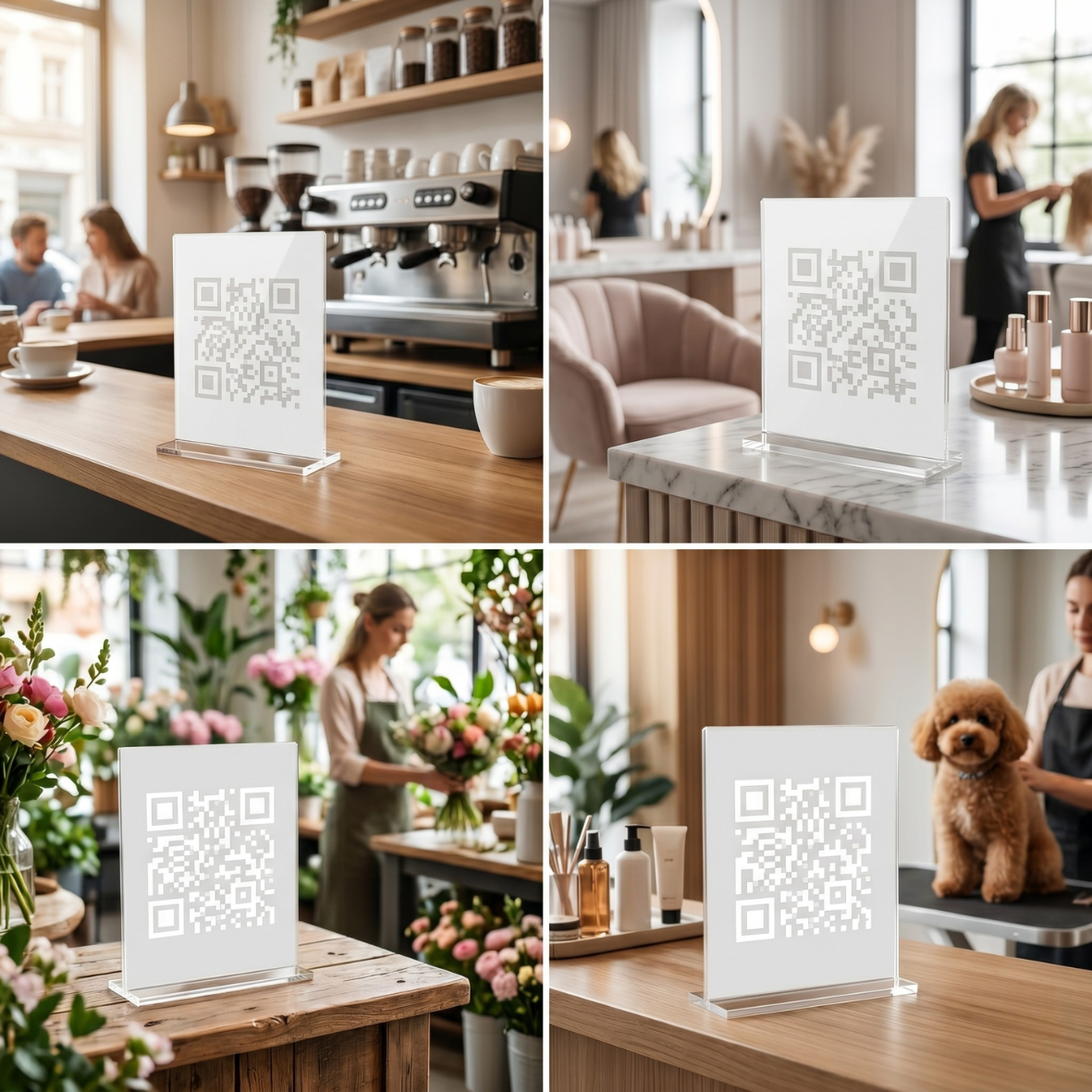 接待區/桌面: 客人入座、候位時,隨手掃碼了解更多資訊。